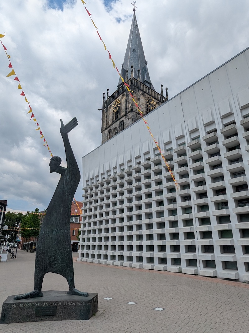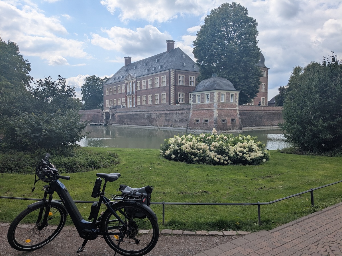I headed off ten-ish, the first few km revisiting my short loop of two days earlier. Waves of memories of the last 9 months washed by me as I rode largely unaware across the quite pleasant landscape. But today brought some actual (geographic) relief, with hills to climb and roll down. A fairly average lunch at a cafe in the pretty town of Burgsteinfurt. The final ride up the hill to Altenberge was oddly emotional.