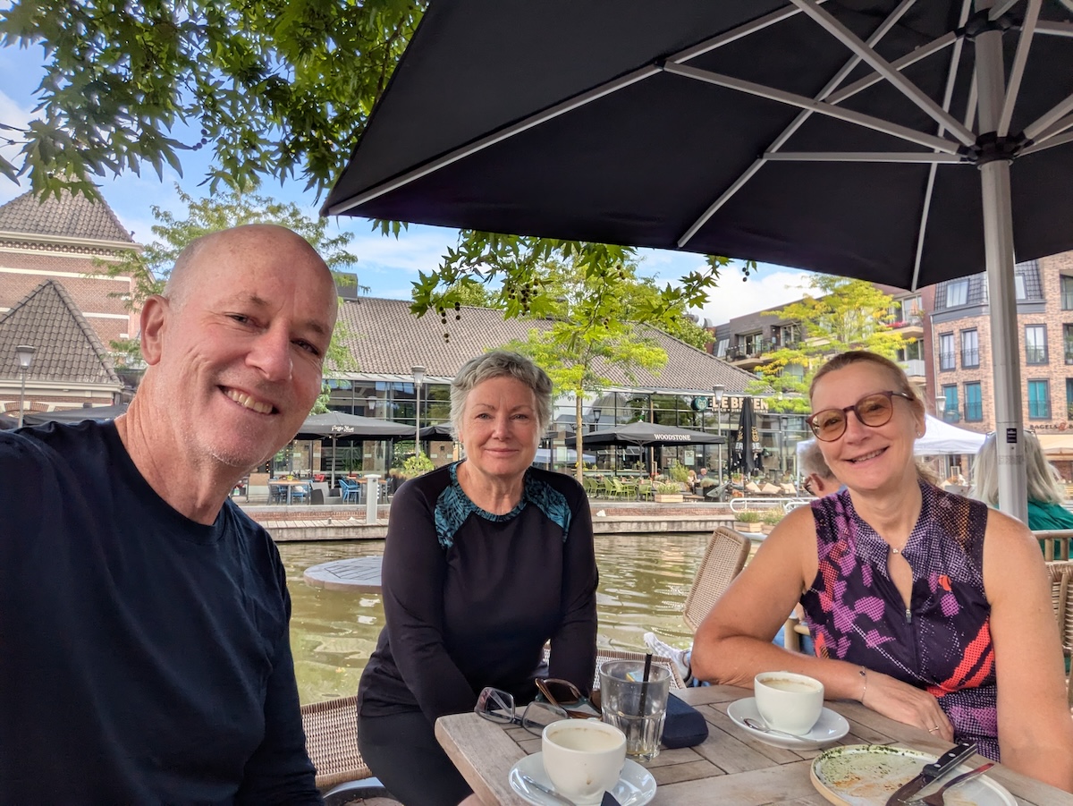 The ride took me across the German border for a bit, which meant more on-road (back road) cycling, and loss of phone reception for a while (a crucial while, as it was when Maree was landing in Melbourne). I managed to lose my route with loss of reception, but I went old school and found my way to Vasse (back in the Netherlands), where I found a restaurant who served me a couple of coffees while a little rain came through, and I managed to get my e-SIM working again, and chat to Maree while she was in the uber on the way home from the airport.