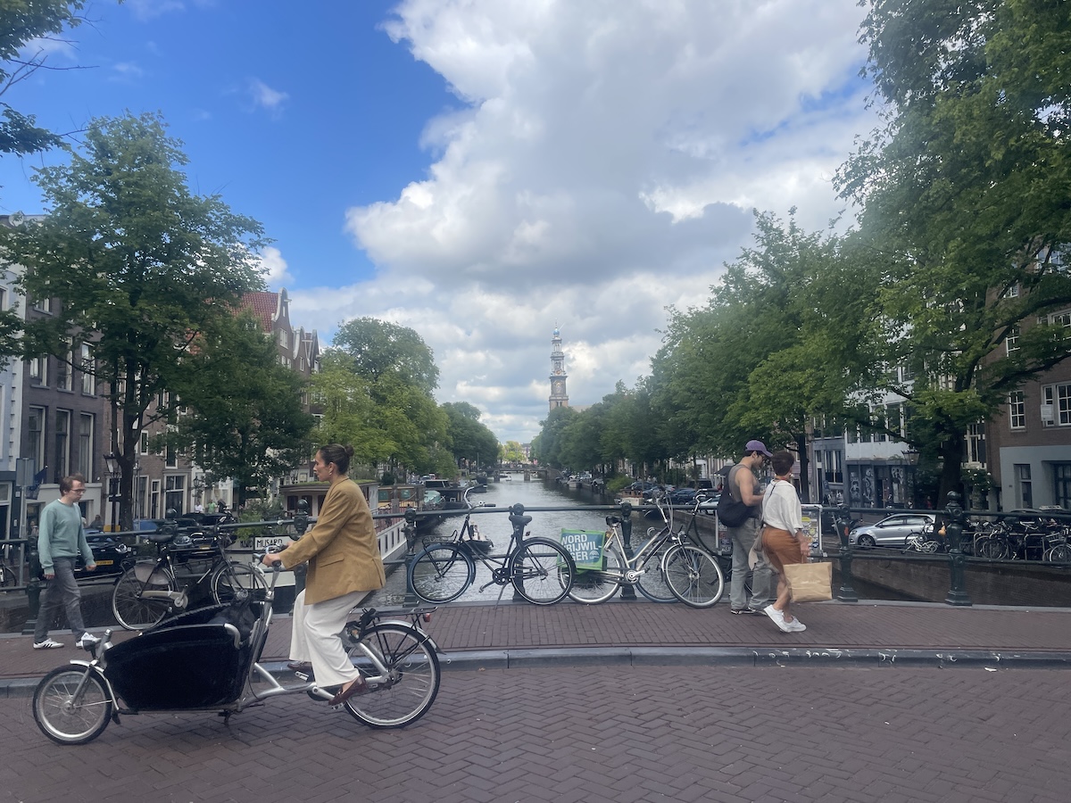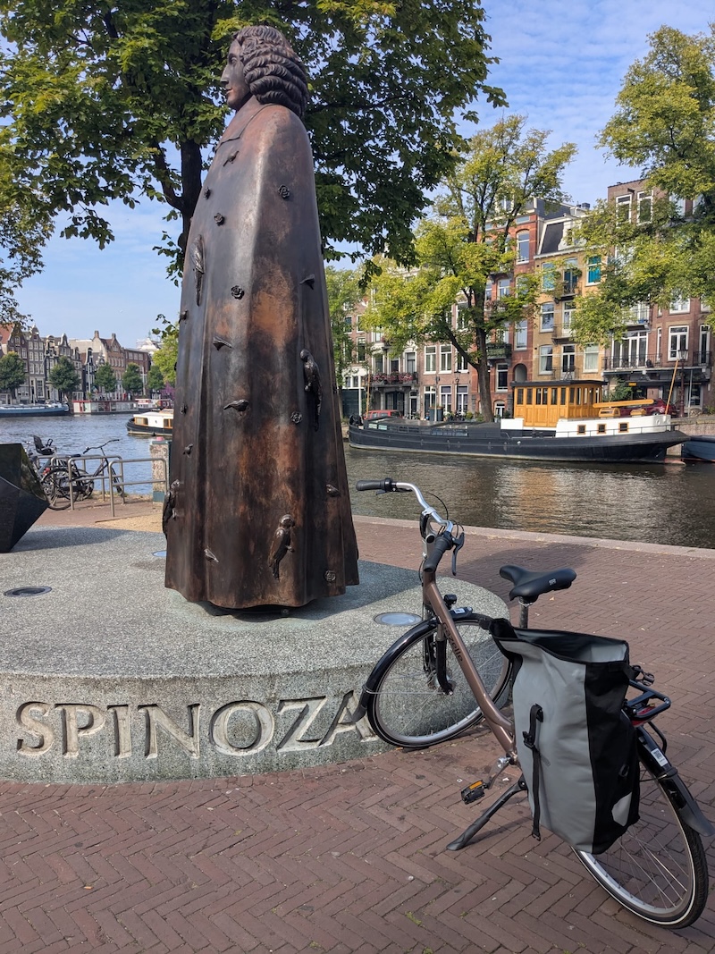 We can’t remember why we elected to take the more direct route from Haarlem rather than the loopy road north that we originally envisaged. But we did, and it was fine. Our entrance into Amsterdam was along pleasant parks, and we found ourselves having a civilised lunch on a quiet street among the canals, thinking Amsterdam was a quiet pleasant place.