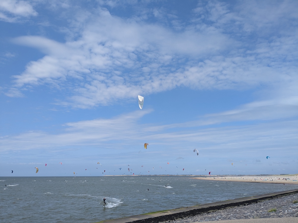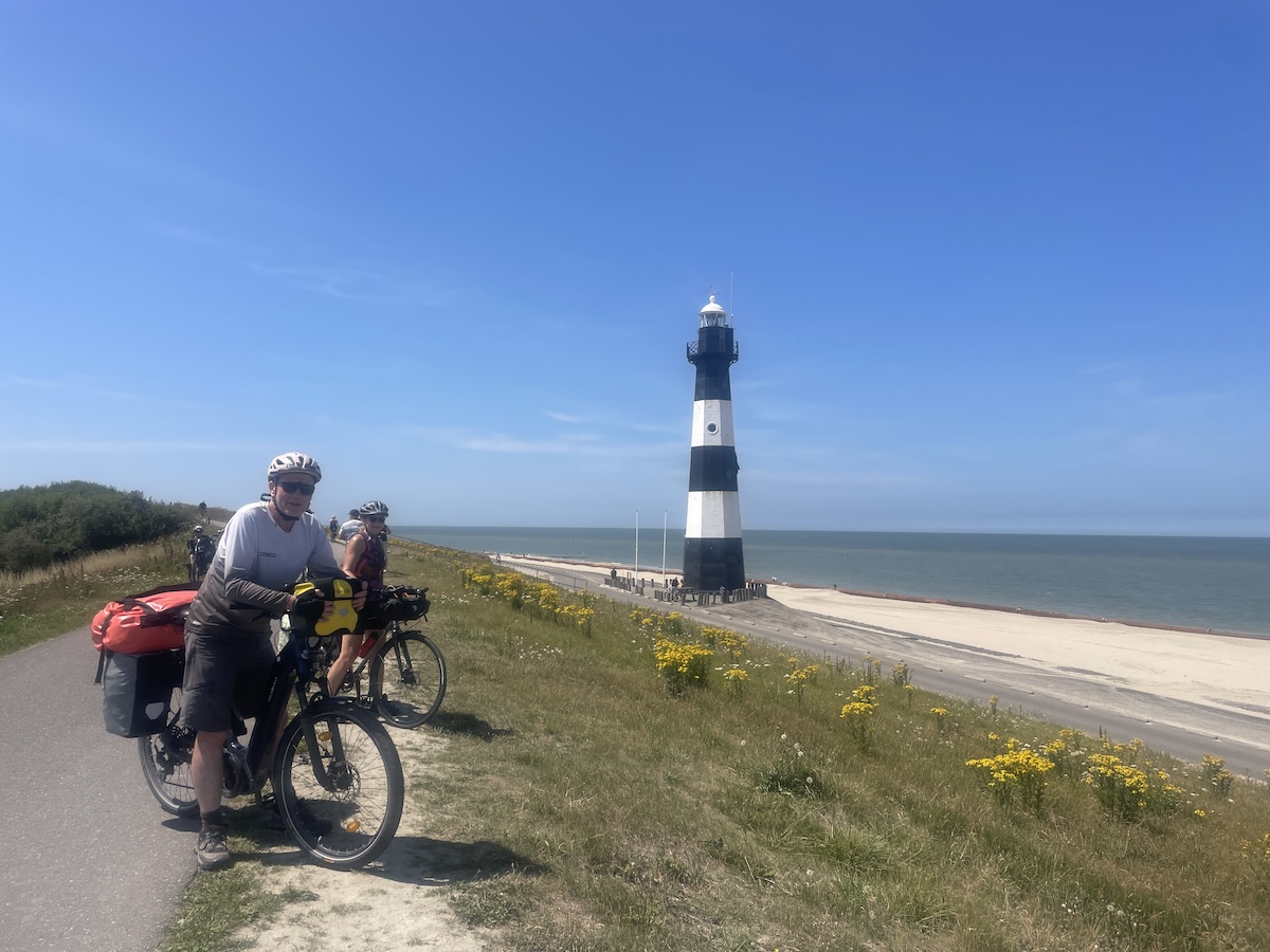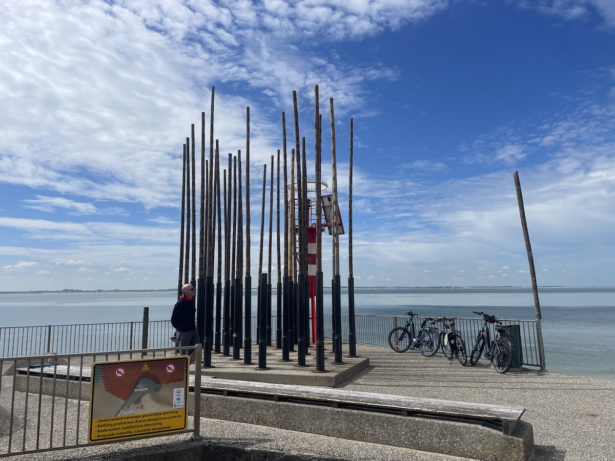 Starting along Vlissingen’s beach, we eschewed the many beach-side cafes, and headed for the windchimes on the point, which were not quite as entertaining as many of their bemused google reviews (4.6 stars). From there, the trail took us through the lovely coastal forest behind the dunes. In peak take-it-easy mode, we stopped for leisurely coffee in the garden terrace of the Restaurant Valkenisse at the 8 km mark. The coastal forest only improved on the way into WestKappel. We rode past the town up onto the dyke to the Capwest restaurant on the dyke, where we admired the sea view over toasties. The ride home through more forests and fields and through Middleberg gave us a taste of the diversity Zeeland has to offer.