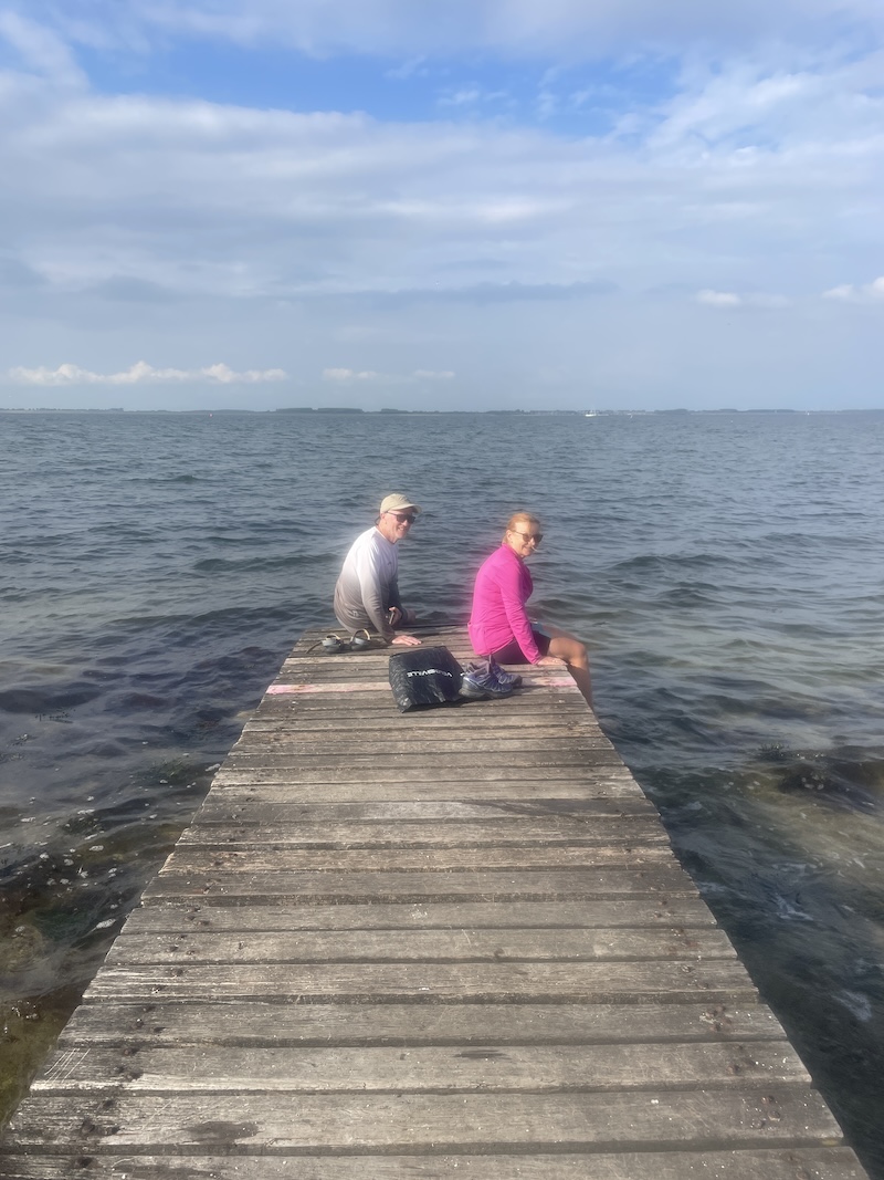Chris rode the 3 km into Bruimisse for provisions at the Marina supermarket (which had a very Metung vibe), and on my return we rode down to the dyke to dip our feet into the lake off the jetty. An excellent night’s camping!