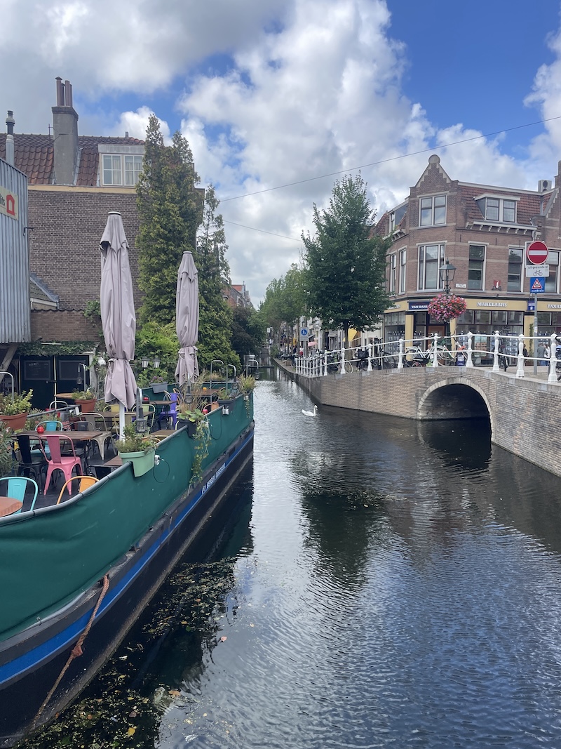 We approached Leiden through the very modern medical research district, and after navigating another diversion in the last kilometre, we arrived at the pleasantly cool Ibis hotel. In the evening we wandered out to the cafe street along the canal behind the Ibis, and lucked on the very funky Paca Ciao restaurant, entering through a an entrance thrugh a cuppboard a la The Lion The Witch and The Wardrobe - where the vibe ended up being somewhat better than the food. An ice-cream and a wander/sit around the canals and streets of Leiden ended the day. As is often the case with University towns, Leiden has a really nice vibe about it.
