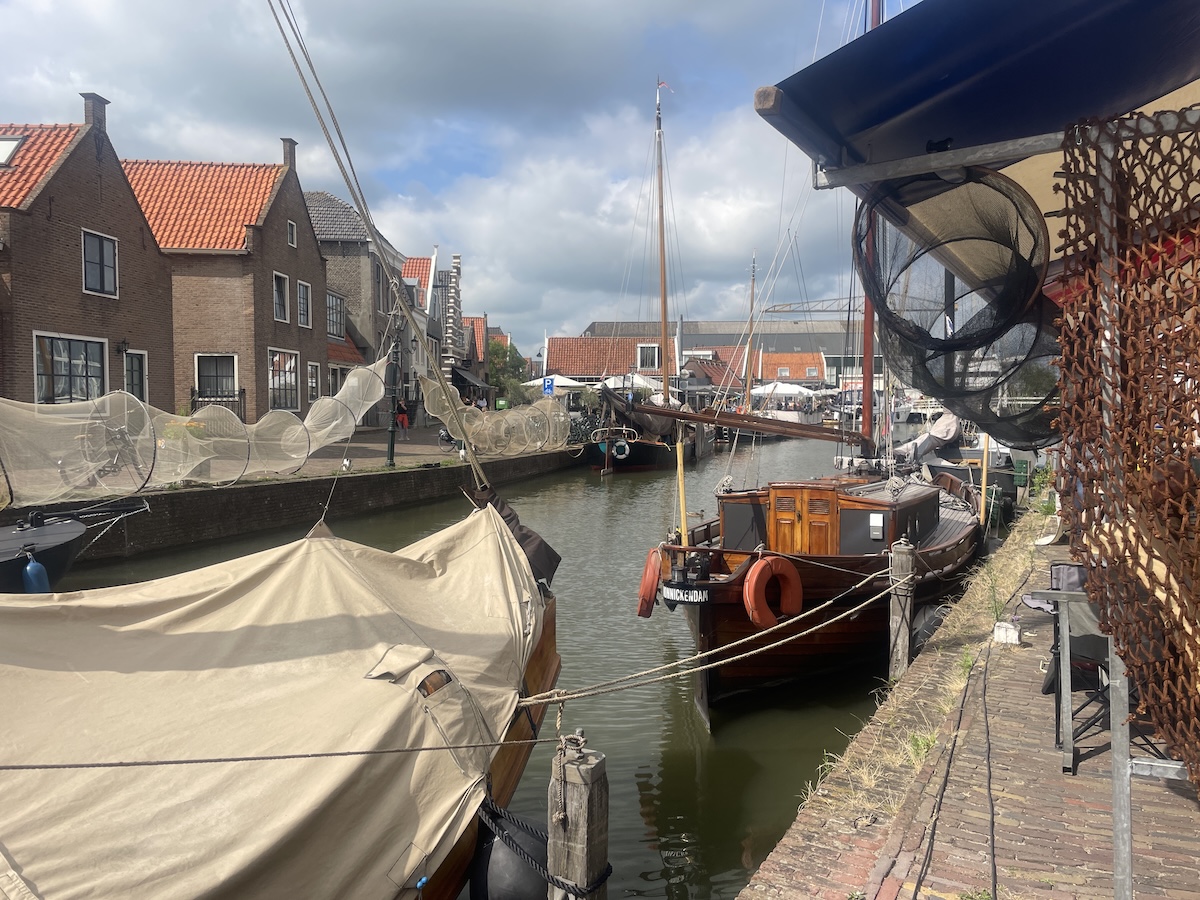We left Vlissingen along the south coast, stopping to ponder the tide rushing out of the channel for a while. After heading inland to join yesterday’s track for a bit, we stopped for coffee at a flash restaurant on a marina. While there we realised we would miss the hourly ferry at 12:30 (30 min away), and decided to go an extra 5 km to a bridge to the next Zeelandic island (maps seem to be shy about giving these islands names, so we’re not really sure what the Island’s name is). After lunch under some trees (a relatively rare commodity along the route) near the bridge, we made quick work of the ride across the island to the 5-km long bridge to our destination island. A brief stop at Zierikzee (with a plan to return tomorrow) before a cycle through the fields to our Welcome to my Garden paradise at Arjan and Helen’s beautiful farm.