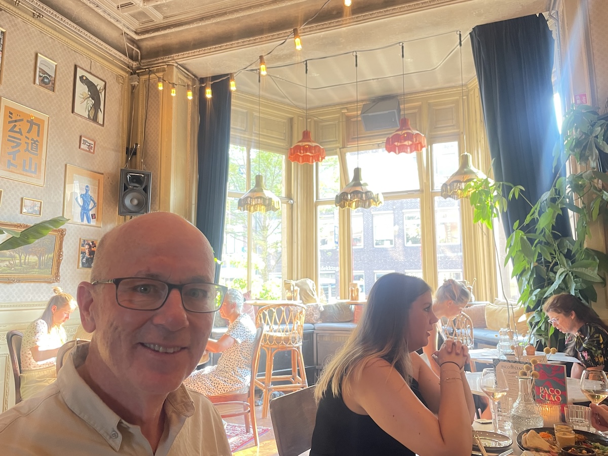 We had two comfortable nights in our apartment, but while there, health-related anxiety peaked. We decided it was time for Maree to head home, and we brought her flight home forward to three days time. Sadly we couldn’t extend our stay in the apartment so we moved to the Bildeberg Hotel near Zwolle station, and Maree booked a hotel room in Amsterdam for the following night before her flight. After some logistical shenanigans, Chris hired a car for the day to transport Maree’s bike the 120 km to Altenberge, while Maree caught the train to Amsterdam. On returning to Zwolle having delivered the bike to our place in Altenberge, Chris realised he had enough time to catch the train to Amsterdam for one last date with Maree before she left. Our Italian dinner in bustling Amsterdam was a better farewell than our rushed goodbye at Zwolle station, and Chris took the dusk train back to the hotel in Zwolle before his solo last leg back to Altenberge.