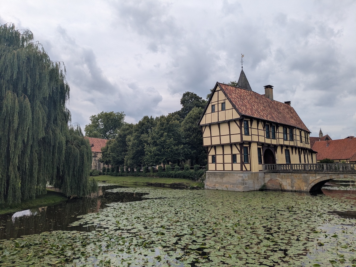 It was Netherlands almost all the way to Gronau - not super memorable. I managed to have the wrong address in my route, and I sailed past my airbnb to the other side of town as the rain was building behind me. By the time I worked out where I needed to be and started riding the 11 minutes back, the rain arrived and I had to stop in the town of Gronau (not super exciting). The airbnb is fine, but the bedroom extension has a crazy low roof.