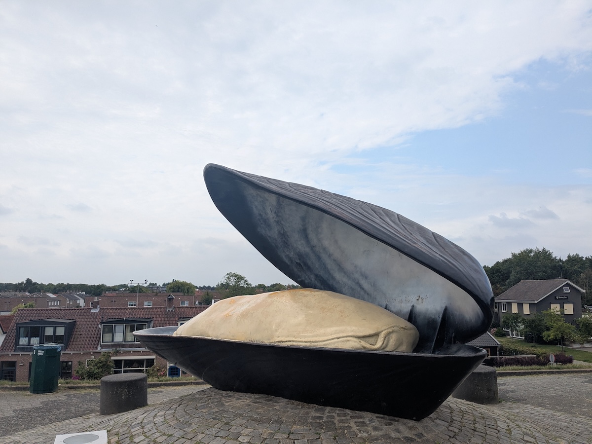 Our host, Helen had promised today’s ride to be the best in Europe. Perhaps the weather influenced our view, but the day didn’t make it into our top 10, although the Big Mussel at Bruimisse was an unexpected highlight as were the path side blackberries. It was a pleasant ride while we were heading south-west, but once we turned into the headwind on the south coast, what promised to be a lovely ride became a tough slog against 50-km winds.