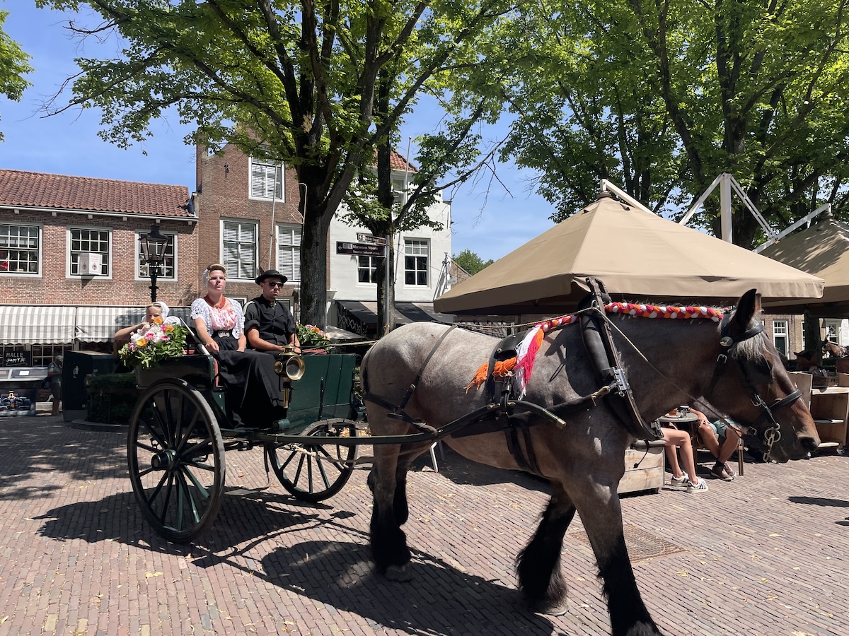 Having been impressed with our taste of Zeeland yesterday, we tackled a similar loop today. First through the parks of Vlissingen before joining the forest section of yesterdays loop for a couple of km. We headed inland soon after yesterday’s morning tea spot, and found another nice cafe for coffee on Kirkring (i.e. the road around the church) in Grijpskerke. We spent a while hanging out drinking coffee like the locals there, before heading north to Veere for lunch. Veere was pretty busy, with a parade of traditionally dressed families doing loops in their horse-drawn carriages. We settled in watching the parade over another toastie lunch in the terrace of a bakery, contemplating how surprisingly good the food has been in the Netherlands. We headed back along the coast to cross Middelberg a different way to yesterday, and back home inland through the suburbs of Middelberg and Vlissingen. We decided on a cool drink on the Vlissingen Strand before retiring for the day.
