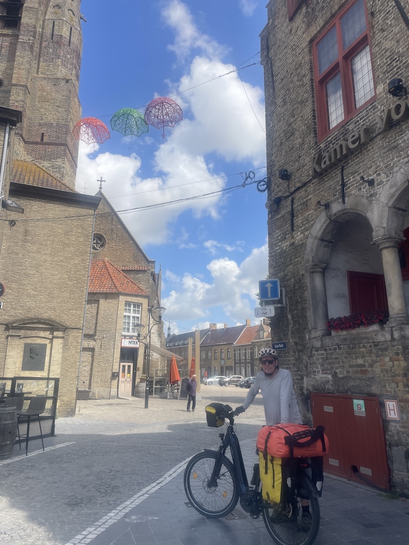 It was a flat ride on backroads to the Belgian border. We took lunch in the attractive Belgian town of Veurne, which was remarkably bereft of accommodation options. Suddenly, here in Belgium, the shops seemed more familiar to our Australian sensibilities. We cruised past (tempted to stop at) a (non-Decathlon) outdoors shop on the outskirst of Veurne, the like of which we had not encountered in our European travels to date.