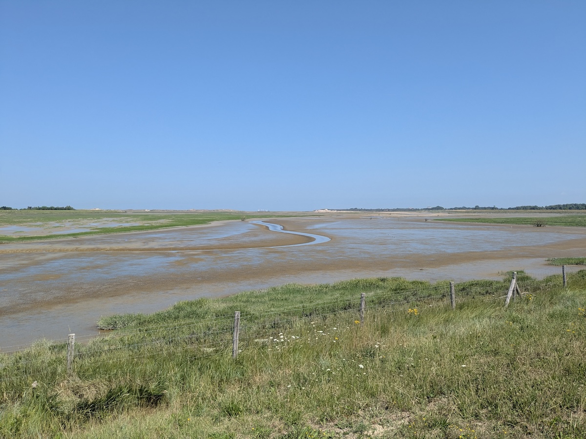 It was a delightfully easy 10 km across the isthmus with the wind at our backs (past masses of kite surfers enjoying the wind) into the strange world of parc-camping at Port Zealand. After checking in at the wrong place, we were directed on the 1km ride around the outside of the park to the camping entrance, where we found our shady pitch for the night. We wandered in for an average dinner at one of the cafes in the park.